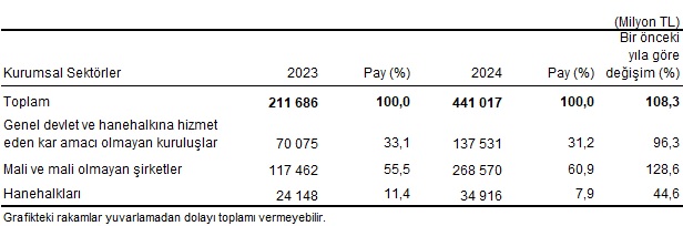 Etraf müdafaa harcamaları 2024 yılında bir evvelki yıla nazaran %108,3 artarak toplam 441 milyar TL olarak gerçekleşti. Etraf muhafaza harcamalarının %60,9’u mali ve mali olmayan şirketler, %31,2’si genel devlet ve hanehalkına hizmet eden kar maksadı olmayan kuruluşlar ve %7,9’u ise hanehalkları tarafından yapıldı.