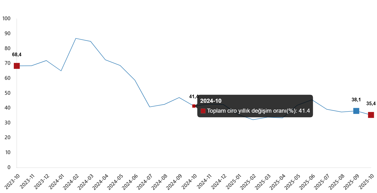 Toplam ciro yıllık değişim oranı(%), Ekim 2025