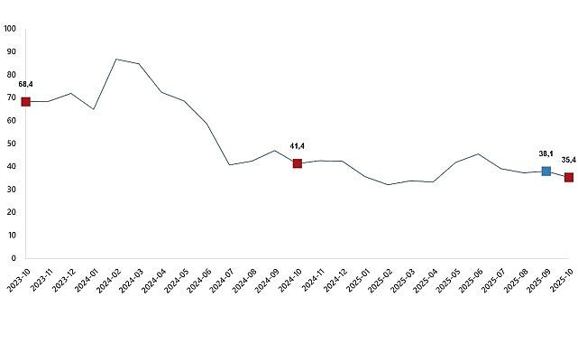 Sanayi, inşaat, ticaret ve hizmet kesimleri toplamında ciro endeksi (2021=100), 2025 yılı Ekim ayında yıllık %35,4 arttı.