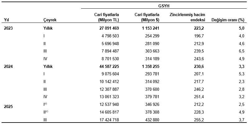GSYH sonuçları, III. Çeyrek: Temmuz – Eylül, 2025