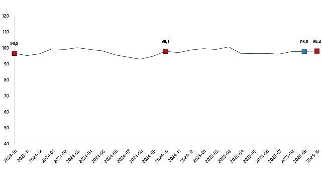 Ekonomik itimat endeksi Eylül ayında 98,0 iken, Ekim ayında %0,3 oranında artarak 98,2 bedelini aldı.