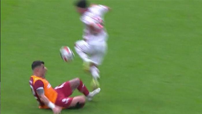 Bülent Yıldırım: ‘Tabanı gösterdiniz mi? Gösterdiniz. Bu topa sert değil artık rakibi de riske atıyorsunuz. Net denetimsiz faul ve sarı kart.’Deniz Çoban: ‘O kadar denetimsiz ki hareketten sonra da kaymaya devam ediyor. Avantaj işareti de yok. Çok açık faul. Çok açık sarı kart.’Bahattin Duran: ‘Bence bunun tartışması olmaz. Başkalarına ikaz olur falan dedik lakin… Rakibin iki ayağına da temas ediyor. Çok net sarı kart.’