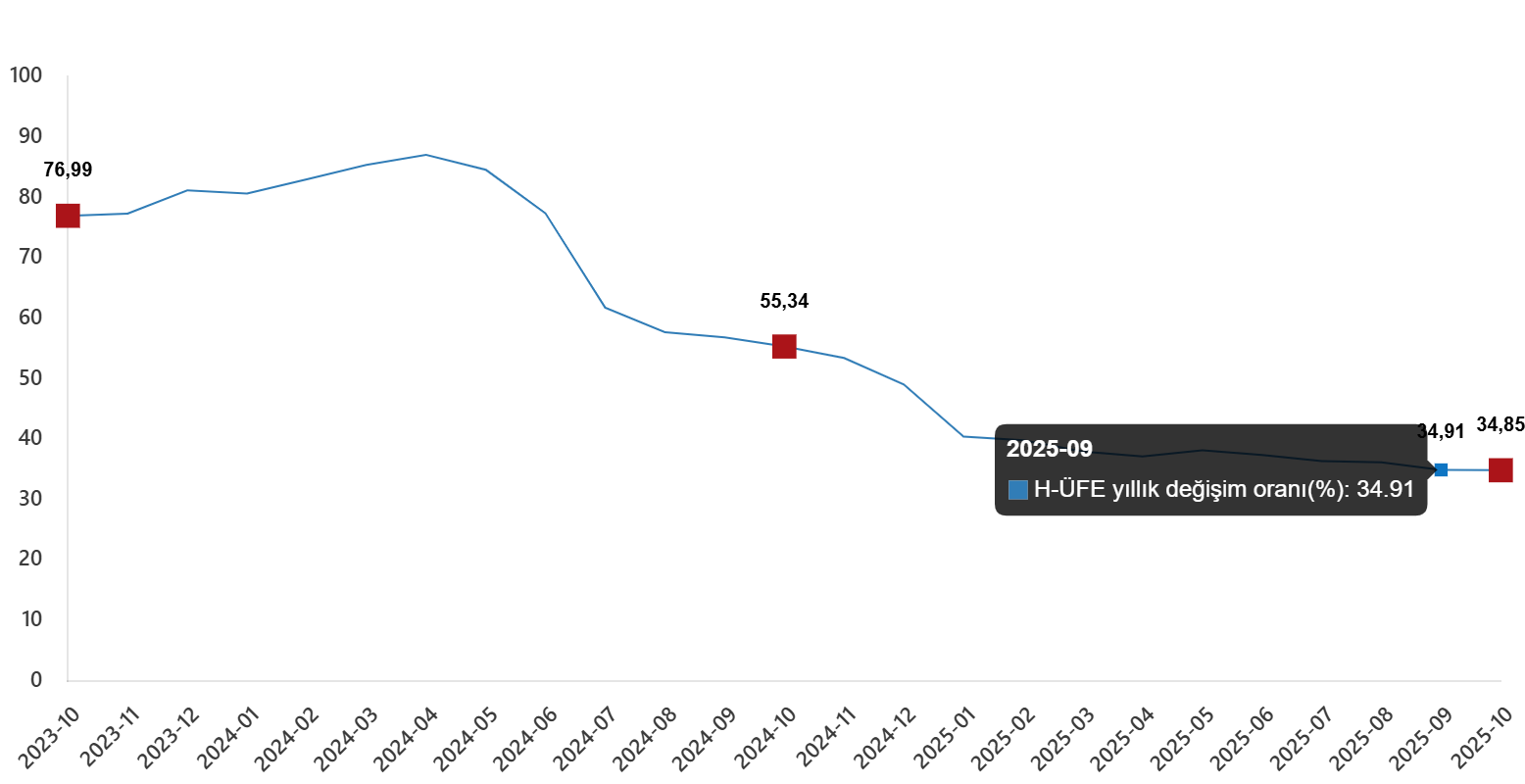 H-ÜFE yıllık değişim oranı(%), Ekim 2025