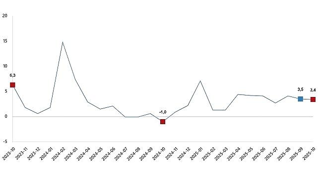 Hizmet üretim endeksi (2021=100) 2025 yılı Ekim ayında bir evvelki aya nazaran %0,3 azaldı. Birebir ayda ulaştırma ve depolama hizmetleri %0,4 arttı, konaklama ve yiyecek hizmetleri %0,7 arttı, bilgi ve irtibat hizmetleri %3,4 azaldı, gayrimenkul hizmetleri %3,3 arttı, mesleksel, bilimsel ve teknik hizmetler %0,7 azaldı, idari ve dayanak hizmetleri ise %1,2 azaldı.