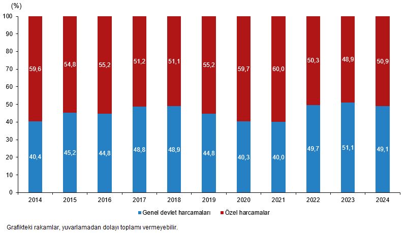 Toplam kültür harcamaları içinde genel devlet harcamalarının hissesi 2024 yılında %49,1 oldu. Genel devlet kültür harcamaları 2024 yılında evvelki yıla nazaran %76,1 artarak 200 milyar 369 milyon 171 bin TL olurken, harcamaların %67,8’i merkezi devlet bütçesinden gerçekleşti. Genel devlet kültür harcamalarında en yüksek hisse %17,7 ile kültürel miras alanında oldu.