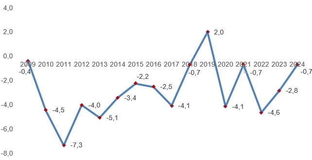 Toplam iktisat 2023 yılında GSYH’nin %2,8 ile net borç alan konumdayken, 2024 yılında %0,7 ile net borç alan durumda oldu.