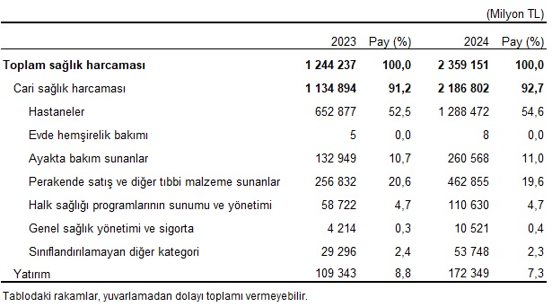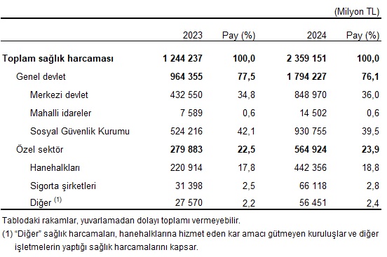 Genel devlet ve özel bölüme nazaran toplam sıhhat harcaması, 2023, 2024