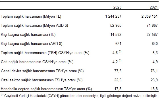 Sağlık harcamalarına ait temel göstergeler, 2023, 2024