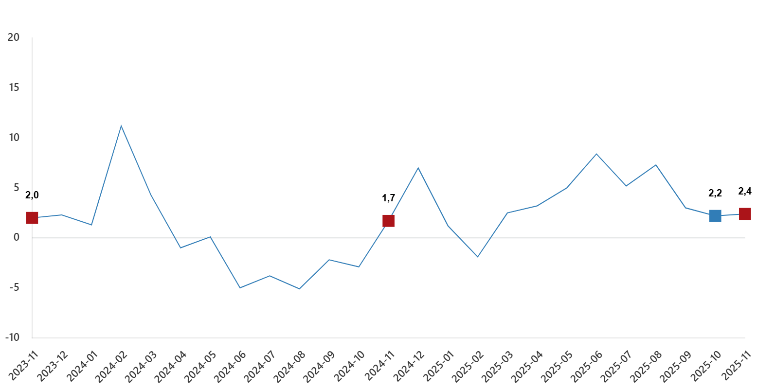 Sanayi üretim endeksi yıllık değişimleri(%), Kasım 2025