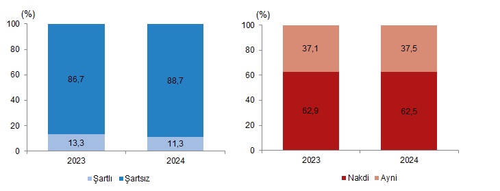 Türlerine nazaran toplumsal muhafaza yardımları (%), 2023, 2024