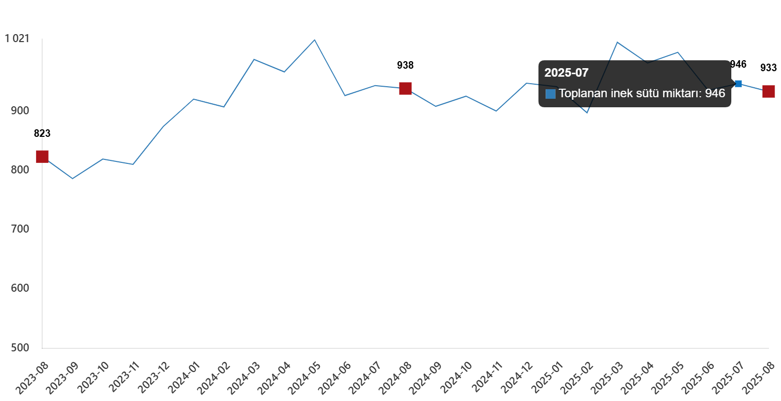 Toplanan inek sütü ölçüsü, Ağustos 2025
