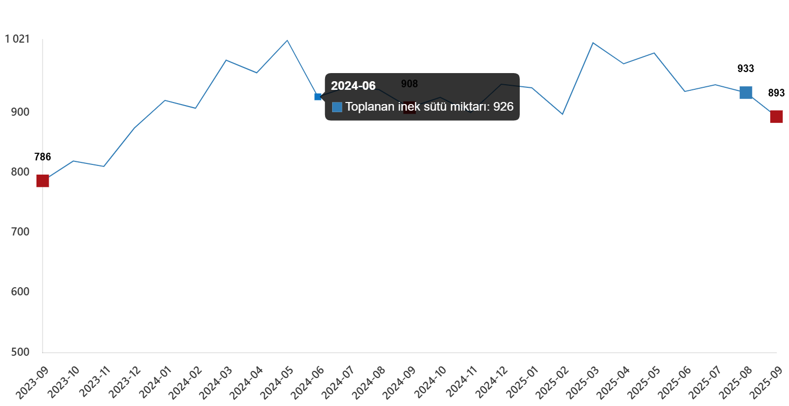 Toplanan inek sütü ölçüsü, Eylül 2025
