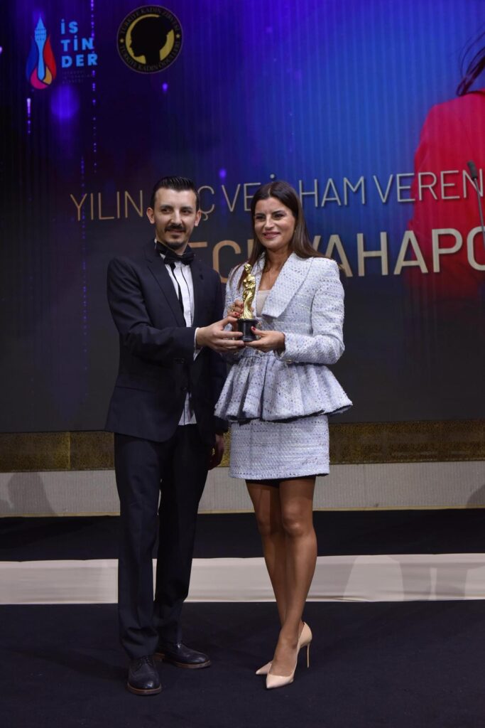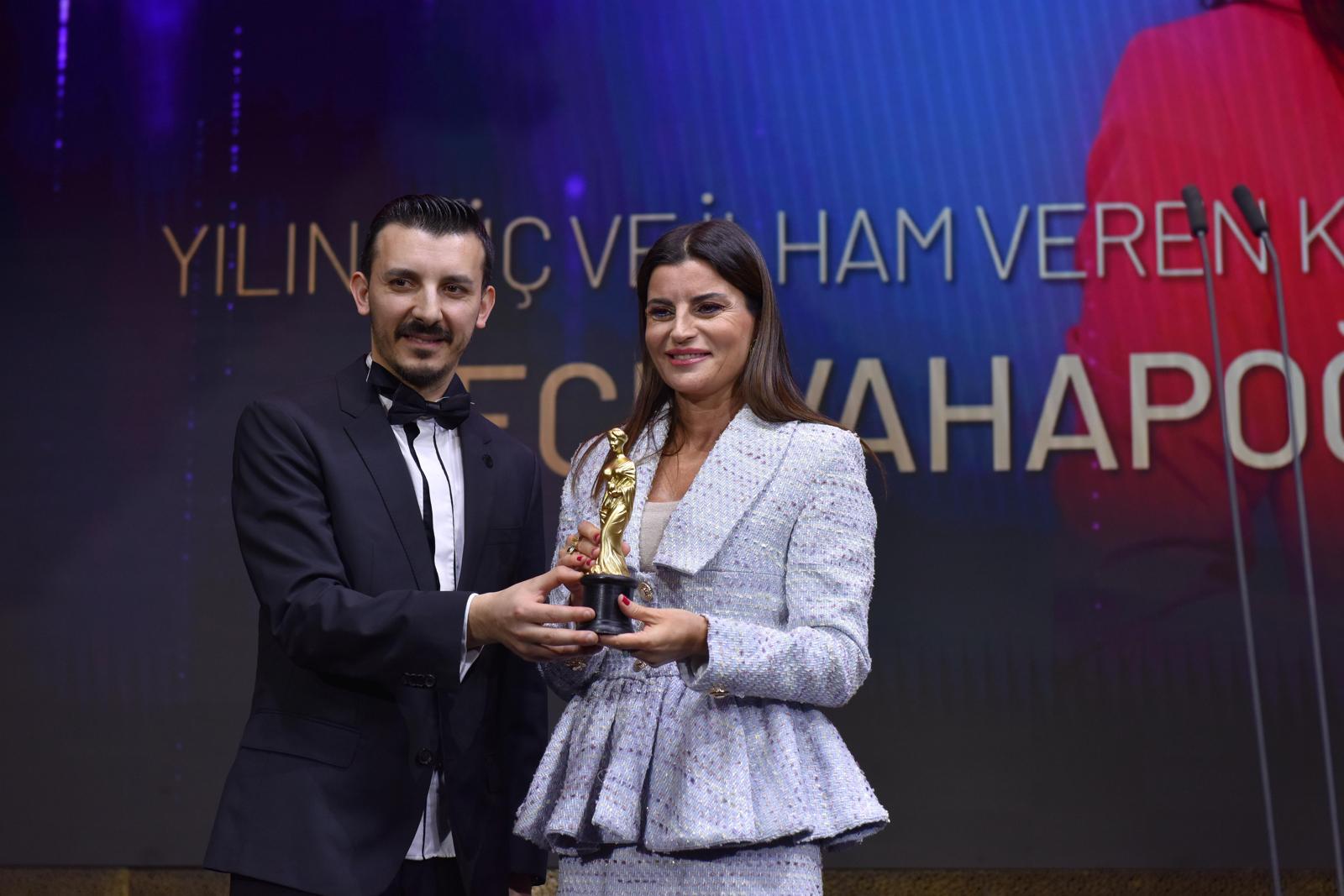 Zirve kapsamında düzenlenen ödül töreninde Tanju Menteş, “Yılın Güç ve İlham Veren” ödülünü başarılı isim Ece Vahapoğlu’na takdim etti.