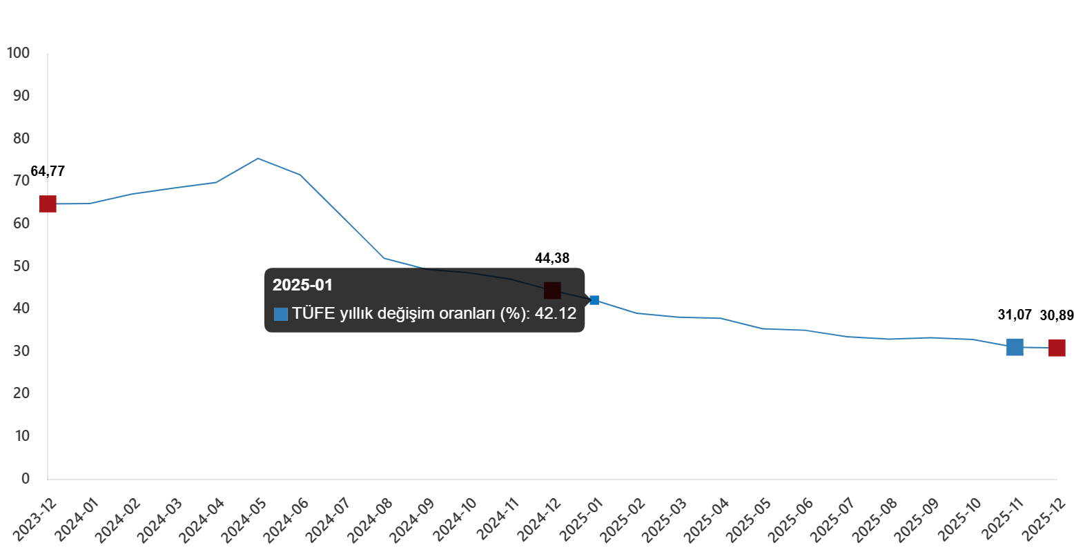 TÜFE yıllık değişim oranları (%), Aralık 2025