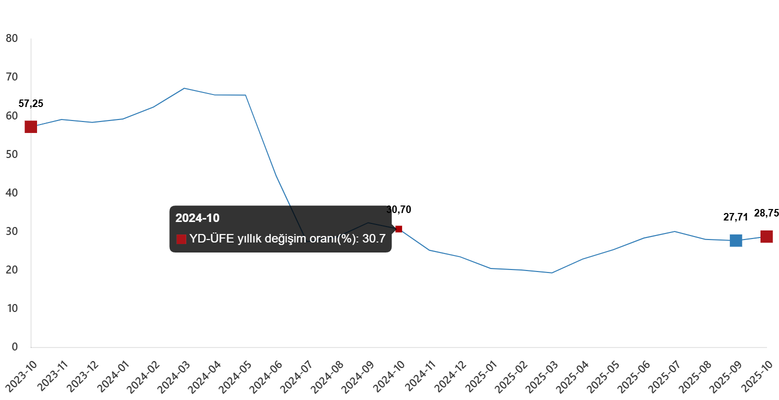 YD-ÜFE yıllık değişim oranları (%), Ekim 2025